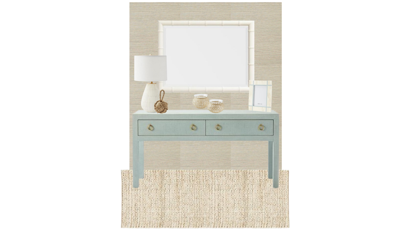 Breezy textures, soft teals and natural fibers create a serene entryway that feels like a seaside retreat. This Coastal Vibe foyer balances crisp whites with weathered finishes to welcome guests with understated elegance and an easy, relaxed energy.