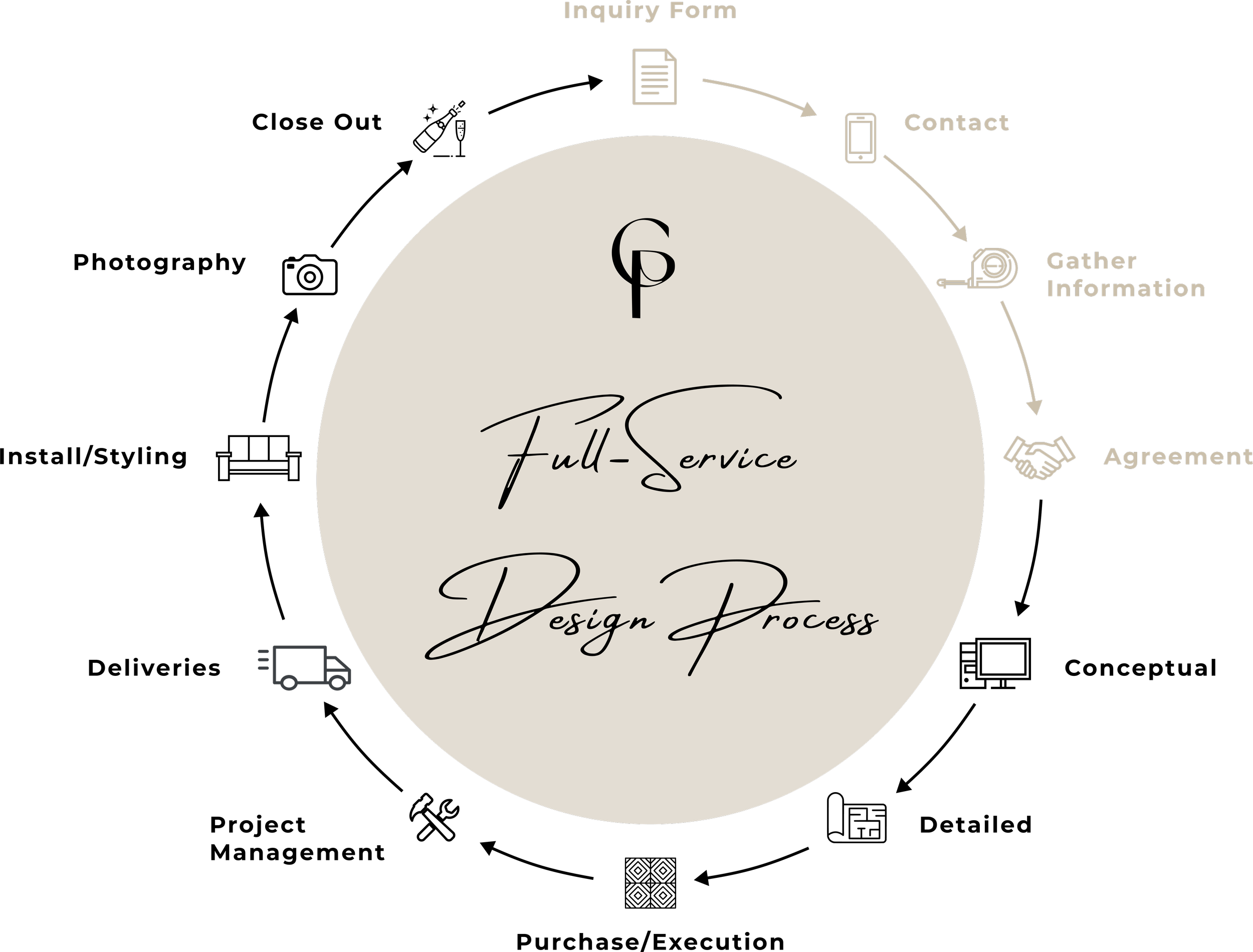 Detailed Design includes finalizing layouts & plans, final sourcing, in-person presentation- design & proposals by room in conjunction with investment amount